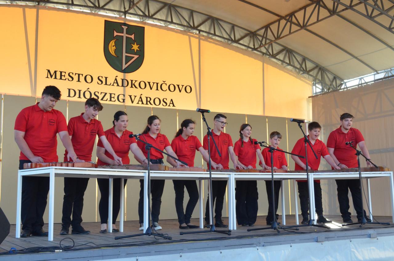 Podujatie otvoril primátor mesta Gábor Krommer, ktorý privítal prítomných, pripomenul im históriu vzniku tejto milej tradície a zaželal všetkým príjemne strávený podvečer. V sprievodnom programe vystúpili deti sládkovičovských materských a základných škôl, ktoré potešili prítomných svojím programom. Kultúrny program uzavrel citarový súbor Diócska, ktorý predviedol svoje umenie v hre na citarách. Vyvrcholením podujatia bolo stavanie mája, o ktoré sa pričinili technické služby a dobrovoľný hasičský zbor, za čo im patrí veľká vďaka. O spríjemnenie večera sa postarala hudobná skupina Novum. Ďakujeme všetkým účinkujúcim za krásny program a Melinde Csáki za sprievodné slovo.