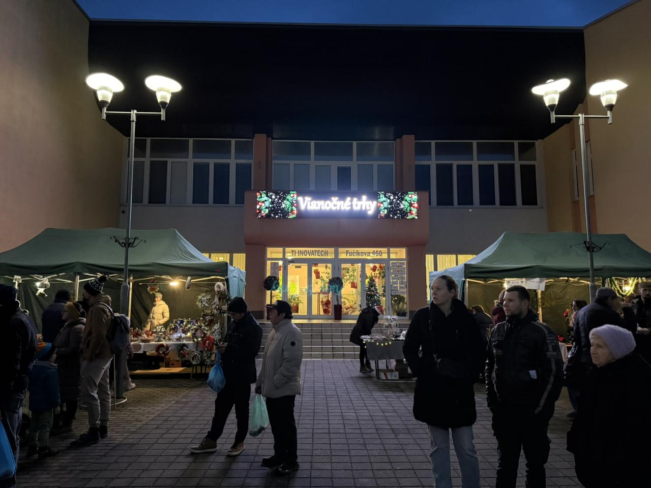 Návštevníkov privítala vôňa punču, tradičných dobrôt a ručne vyrábaných darčekov od miestnych remeselníkov – domáci med, keramika, ozdoby, trubičky či oplátky. Nechýbali ani čerstvé šišky od členov Klubu seniorov. Celkový dojem umocnila aj krásna vianočná výzdoba pred Inovatechom, ktorá dotvárala čaro celého podujatia.