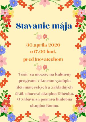 Mesto Sládkovičovo Vás pozýva na tradičné stavanie mája, ktoré sa uskutoční 30. apríla 2026 o 17:00 pred Inovatechom.