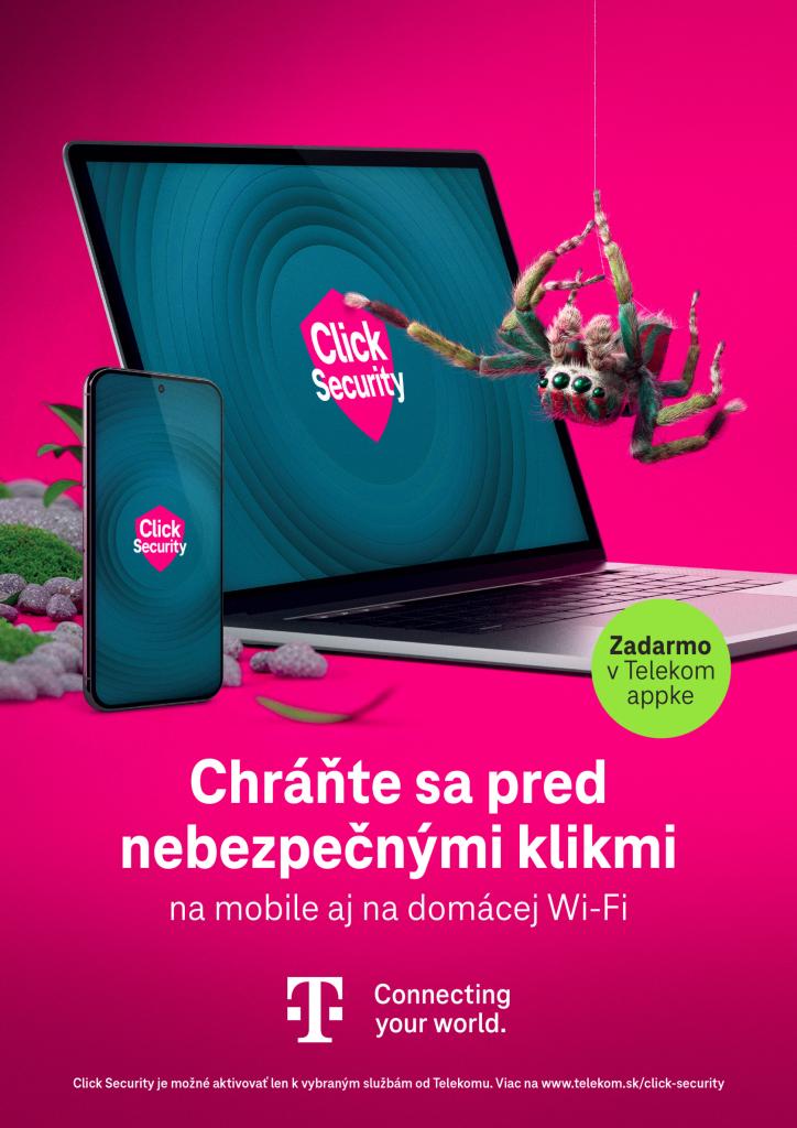 Chráňte sa pred online podvodmi aj so službou Click Security, ktorá funguje na mobile aj na domácej Wi-Fi od Telekomu. Aktivovať si ju môžete zadarmo v Telekom aplikácii.